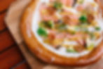 Brizza "Bayer" mit Obatzter-Schmand, Zwiebeln, Speck und Emmentaler